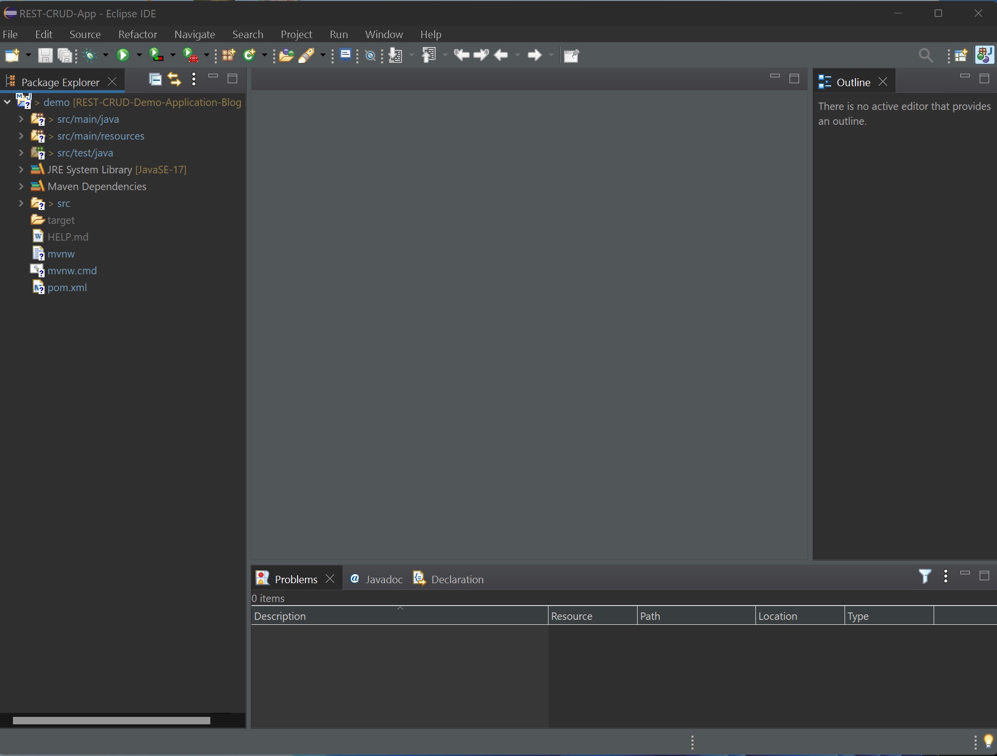 We will create a package called entity (crud.rest.demo.entity). This package must be under this domain for the Spring Boot application to scan the annotations automatically.